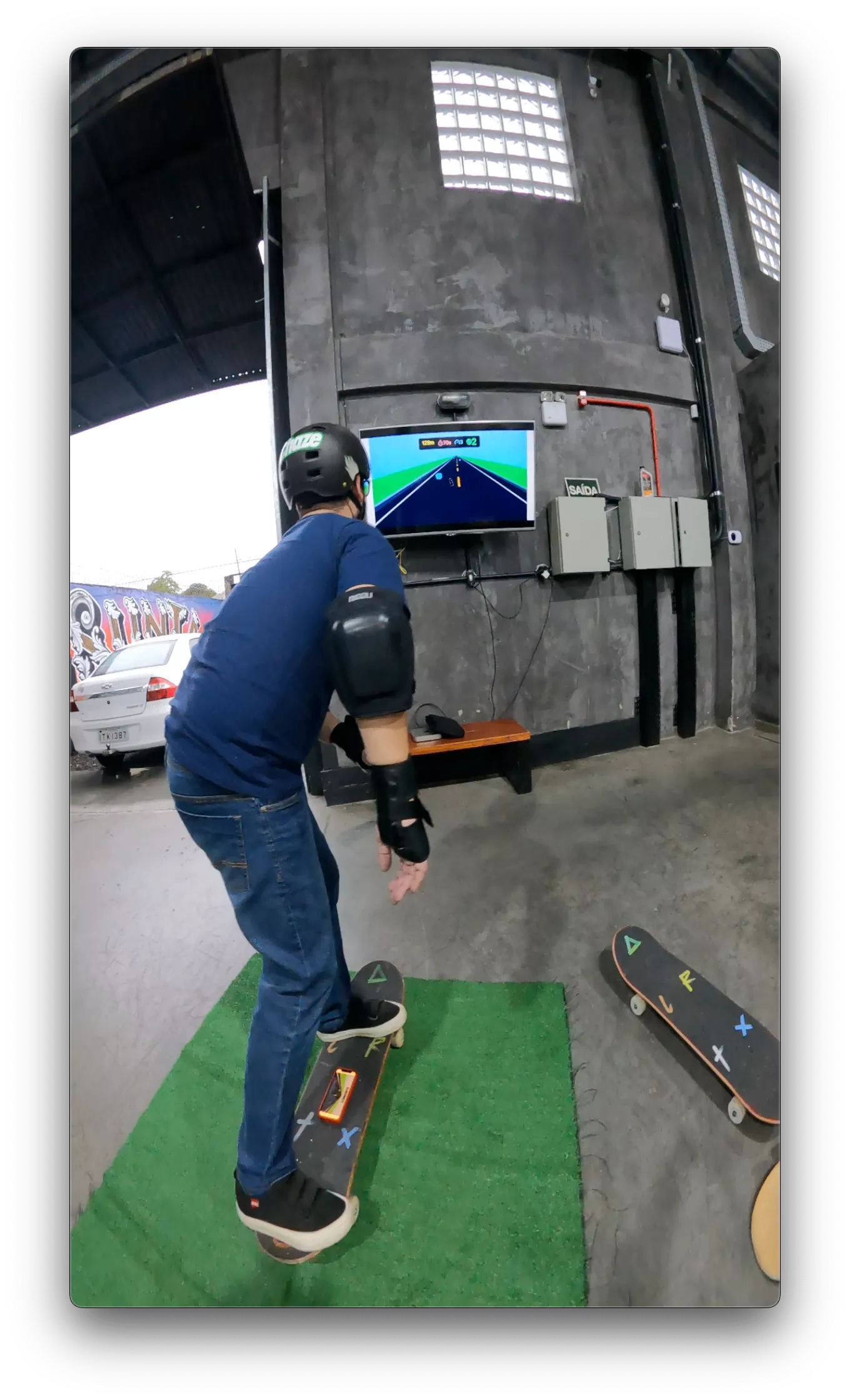 Além disso você vai ter acesso ao APP PlaySkate, o jogo onde você transforma o teu skate em um joystick e na TV da sala sob o tapete (com o skate parado), você vai aprender e treinar mais de 20 manobras de iniciante.